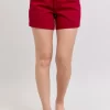 Full Size High Waist Tummy Control Garment Dyed Heart Shaped Denim Shorts Plus Size – Scarlet
