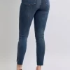 These high-waist tummy control step hem skinny jeans are a versatile and flattering addition to your denim collection. The high-waist design helps to shape and smooth the midsection for a more streamlined silhouette, while the skinny fit accentuates your curves. The step hem detail adds a trendy and modern touch to the classic skinny jeans. Pair these jeans with a fitted top or blouse for a stylish and polished look. Stay comfortable and confident in these high-waist tummy control step hem skinny jeans.