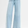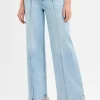High waist wide leg pintuck detailed jeans are a versatile and stylish addition to your wardrobe. The high waist design is flattering and can help elongate the legs, while the wide leg cut adds a chic and fashion-forward element to the jeans. The pintuck detailing adds a touch of sophistication and visual interest to the overall look. These jeans are perfect for creating both casual and dressier outfits. Pair them with a tucked-in blouse and heels for a polished and trendy look, or style them with a basic tee and sneakers for a more relaxed vibe. The combination of high waist, wide leg, and pintuck detailing makes these jeans a fashion statement that can take your outfit to the next level.