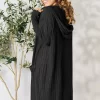 Waist Drawstring Detail Puffy Hoodie Vest – Black