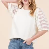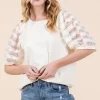 Full Size Lace Puff Sleeve Round Neck Top Plus Size – Cream