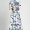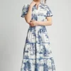 Full Size Landscape Print Short Sleeve Tiered Maxi Dress Plus Size – Blue