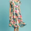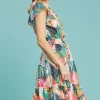 Full Size Leaf Print Cap Sleeve Tiered Midi Dress Plus Size – Orange Mix