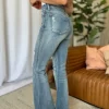 The medium rise tummy control destroy flare jeans are designed to enhance your silhouette while providing ultimate comfort. Featuring a flattering fit, these jeans offer a stylish balance between classic and modern flair. The tummy control feature smooths the waistline, making them perfect for all-day wear. With distressed detailing, they add a trendy edge to your look. Pair them with a fitted top or oversized sweater for a chic ensemble. Elevate your casual wardrobe with these versatile and fashionable flares!