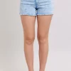 Full Size Mid Rise Garment Dyed Denim Shorts Plus Size – Cyan