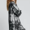 Full Size Mock Neck Flounce Sleeve Metallic Dress Plus Size – Black