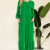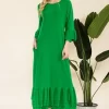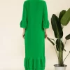 Full Size Modest Midi Dress with 3/4 Ruffle Bell Sleeves Plus Size – Green