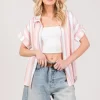 Full Size Multi Stripe Button Down Short Sleeve Shirt Plus Size – Pink