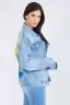 Full Size Painted Back Distressed Denim Jacket – Blue