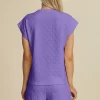 Full Size Pocketed Texture Round Neck Top and Shorts Set – Lavender