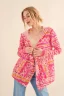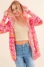 Full Size Printed Thermal Hooded Open Front Cardigan – Coral Multi