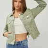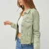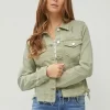 Full Size Raw Hem Button Up Cropped Denim Jacket Plus Size – Sage