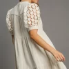 Full Size Ruffled Hem Heart Lace Sleeve Tie Neck Dress Plus Size – Oatmeal