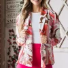 Full Size Shawl Floral Open Blazers Plus Size – Rose/Pink