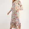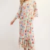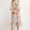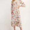 Full Size Soft Floral Ruffle Trim Dress Plus Size – Yellow Floral
