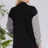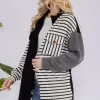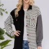 Full Size Striped Button Up Dropped Shoulder Shacket – Black