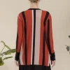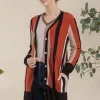 Full Size Striped Button Up Long Sleeve Cardigan Plus Size – Rust