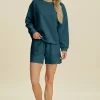 Full Size Texture Round Neck Long Sleeve Top and Shorts Set – Peacock Blue