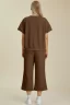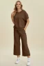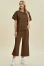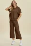 Full Size Texture Round Neck Top and Pants Set – Brown