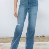 Full Size Tummy Control Cut Raw Hem Straight Jeans – Medium
