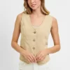 Full Size V Neck Button Down Vest Plus Size – Latte