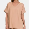 Full Size V-Neck Rolled Short Sleeve T-Shirt and Leggings Lounge Set – Brush
