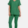 Full Size V-Neck Rolled Short Sleeve T-Shirt and Leggings Lounge Set – Forest