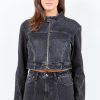 Full Size Zip Up Cropped Denim Rider Jacket Plus Size – Black