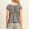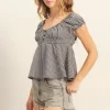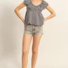 Gingham Scoop Neck Cap Sleeve Blouse – Black