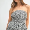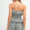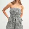 This Gingham Tube Top and Shorts Set is a trendy and cute ensemble that is perfect for warm weather. The classic gingham pattern adds a touch of retro charm to the outfit. Made from lightweight and breathable fabric, this set is comfortable and stylish for a day out in the sun.
