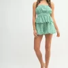 This Gingham Tube Top and Shorts Set is a trendy and cute ensemble that is perfect for warm weather. The classic gingham pattern adds a touch of retro charm to the outfit. Made from lightweight and breathable fabric, this set is comfortable and stylish for a day out in the sun.