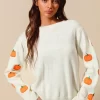 Halloween Pumpkin Applique Embroidered Sweater Top – Ivory
