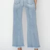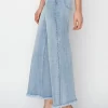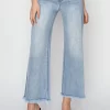 These high rise crop wide fray hem jeans are the perfect choice for a trendy and fashion-forward look. With their cropped length and frayed hem, they add a modern and edgy touch to any outfit. The high rise waist provides a flattering silhouette, while the wide leg style creates a relaxed and comfortable fit. These jeans can be dressed up or down for any occasion, making them a versatile wardrobe staple. Pair them with a tucked-in blouse and heels for a chic evening ensemble, or with a t-shirt and sneakers for a casual day out. Elevate your denim game with these stylish and on-trend jeans.