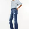 Full Size High Rise Crop Bootcut Fray Hem Jeans Plus Size – Dark
