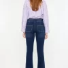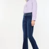 These high-rise flare jeans in a dark wash combine classic style with modern details. Made from stretchy denim, they ensure a comfortable and flattering fit. The double waistband adds a unique touch, while the welt pocket style keeps the look sleek and polished. Featuring a convenient zipper fly, these jeans are perfect for dressing up or down, making them a versatile addition to any wardrobe. Pair them with a fitted top for a chic silhouette or a flowy blouse for a more relaxed vibe.