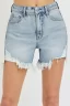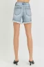 High Rise Side Step Hem Denim Shorts – Light