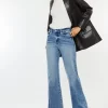 These high-rise wide leg flare jeans in a medium wash are the perfect blend of comfort and style. Made with stretchy denim, they ensure a flattering fit and easy movement. Featuring a classic 5-pocket design and a regular hem, along with a convenient zipper fly, these jeans are versatile enough for any occasion. Pair with a fitted top or oversized sweater for a chic, laid-back look.