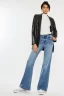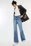 These high-rise wide leg flare jeans in a medium wash are the perfect blend of comfort and style. Made with stretchy denim, they ensure a flattering fit and easy movement. Featuring a classic 5-pocket design and a regular hem, along with a convenient zipper fly, these jeans are versatile enough for any occasion. Pair with a fitted top or oversized sweater for a chic, laid-back look.