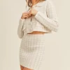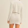 Houndstooth Cropped Knit Cardigan and Mini Skirt Set – Dusty Pink