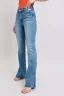 These high-waisted slim bootcut jeans feature tummy control and a vintage wash for a flattering and stylish look. The tummy control design helps create a smooth silhouette and provides a comfortable fit. The vintage wash adds a classic and timeless element to the jeans, perfect for a vintage-inspired aesthetic. The side slit detail adds a modern and trendy touch to the slim bootcut silhouette. With a high waist and slim bootcut leg, these jeans offer a chic and versatile option for various outfit combinations. Elevate your wardrobe with these HW tummy control vintage wash side slit slim bootcut jeans for a fashionable and flattering ensemble.