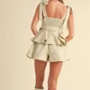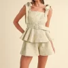 Jacquard Floral Peplum Top and Flare Shorts Set – Sage/Blush