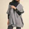 Knit Open Front Hooded Cardigan With Pocket – H Grey