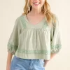 Ditsy Print V-Neck Short Sleeve Wrap Blouse – Sage/Ginger