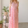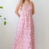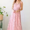 Lace Maxi Cami Dress – Pink