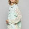 Lace Trim Crochet Button Up Denim Jacket – Pale Mint