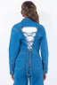 A denim laced back cropped jacket features a button front closure, cropped length, and laced back trims. This stylish piece offers a unique twist on the classic denim jacket silhouette, adding a touch of modern flair to your outfit. The button front closure provides a secure fit, while the cropped length offers a trendy and versatile look. The laced back trims add a playful and eye-catching detail, perfect for those looking to make a fashion statement. Whether paired with jeans for a casual day out or layered over a dress for a night out, this jacket is sure to elevate your style effortlessly. Add a denim laced back cropped jacket to your wardrobe for a chic and on-trend piece that you’ll love to wear.