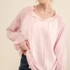 The Leaves Shape Textured Sleeve Blouse Top is a unique and stylish piece with textured sleeves designed in a leaf shape pattern. This blouse top adds a touch of interest and sophistication to your outfit, perfect for a chic and elegant look. Elevate your wardrobe with this fashionable and versatile blouse top!