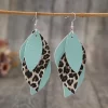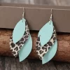 Leopard PU Leather Leaf Earrings - Tiffany Blue