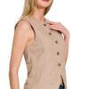 A linen button-down vest is a versatile and stylish piece that can be worn in various ways to elevate your outfit. The linen fabric makes it lightweight and breathable, perfect for warm weather or layering during cooler seasons. The button-down design adds a sophisticated touch, and you can dress it up or down depending on the occasion. Pair it with a blouse and trousers for a chic workwear look, or wear it over a dress or with jeans for a casual yet polished ensemble. The vest can also be worn open or closed, giving you options to style it according to your preference. Overall, a linen button-down vest is a great addition to your wardrobe for adding an extra layer of interest and style to your outfits.