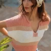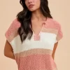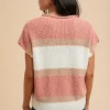 Low Gauge Color Block Textured Sweater Top – Peach/Ivory
